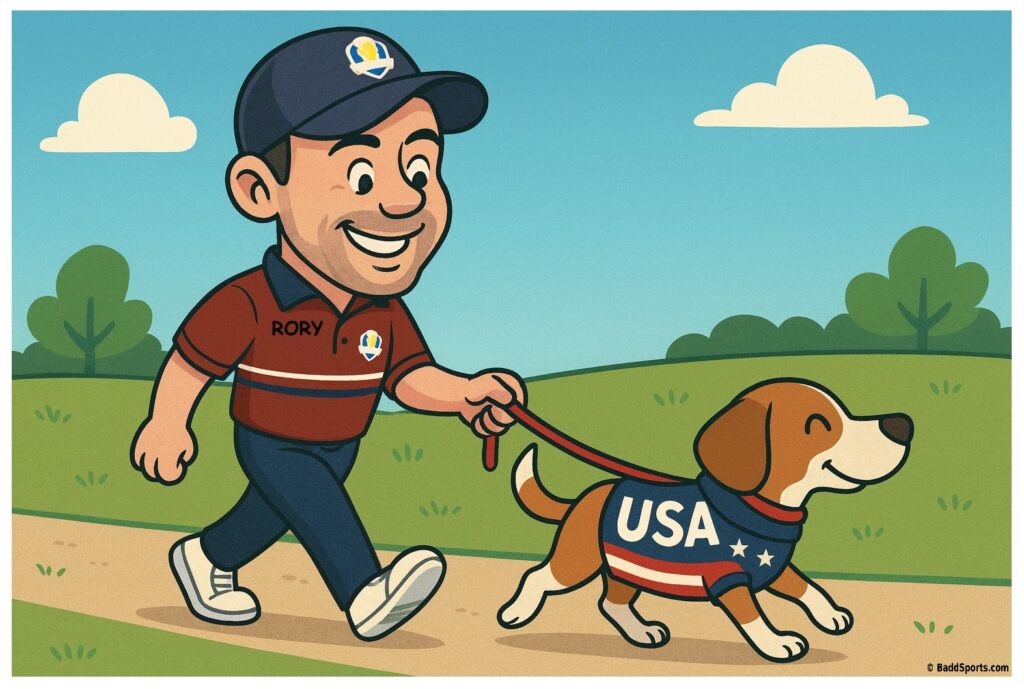 Rory just out here smiling, taking America for a walk. ๐Ÿ•๐Ÿ‡บ๐Ÿ‡ธ After a weekend where 50,000 hecklers tried to break